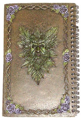 Notizbuch “Sitzende Elfe” Notizbuch mit handbemalter Elfe und Blumen- / Rankeneinfassung. Mit Blumenkugelschreiber !